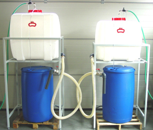 - Befüllung von Reinigungsmaschinen aus 200 bzw. 300 Ltr. halbtransparentem HDPE Tank mit integriertem Kugelhahn DN 38, ist 10 mal schneller als herkömmliche Befüllungsmethoden.