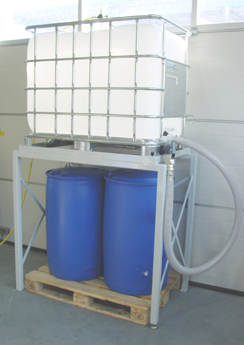 - Zwei Produktfässer passen auf Euro-Palette unter das Gestell
