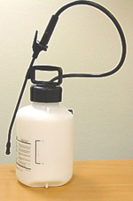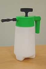 | Funktionsweise: Das Reinigungsmittel wird beim Handsprayer durch eine Hebelpumpe (Ausbringung 1,8 ml pro Hub) und bei aufpumpbaren Drucksprayern durch Öffnen des Auslaßventiles (Ausbringung: Menge ist abhängig von der Öffnungsdauer des Ventiles) versprüht. Wichtig ist die Chemikalienbeständigkeit des Sprühkopfes und der Dichtungen, da meist Konzentrate mit den Sprühgeräten verarbeitet werden. |